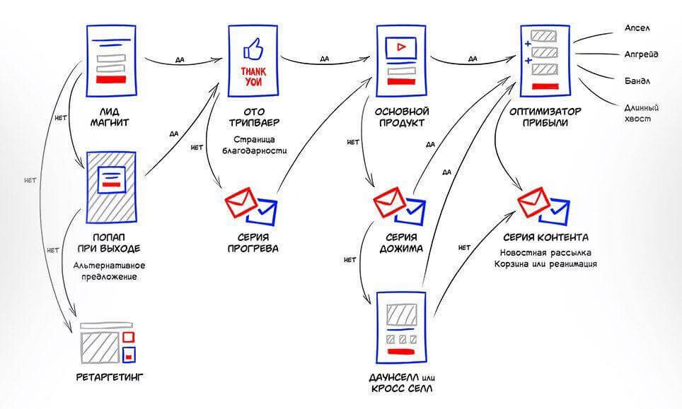 Второе – трипваер. Очень дешевый продукт, допустим полезная инструкция за 99 рублей. Польза этого продукта превышает в сознании его стоимость. Создан для того чтобы повысить доверие клиента, что вы его не кинете и не обманете. Обычно трипваер следует сразу за лид-магнитом на странице благодарности или по цепочке в чате.