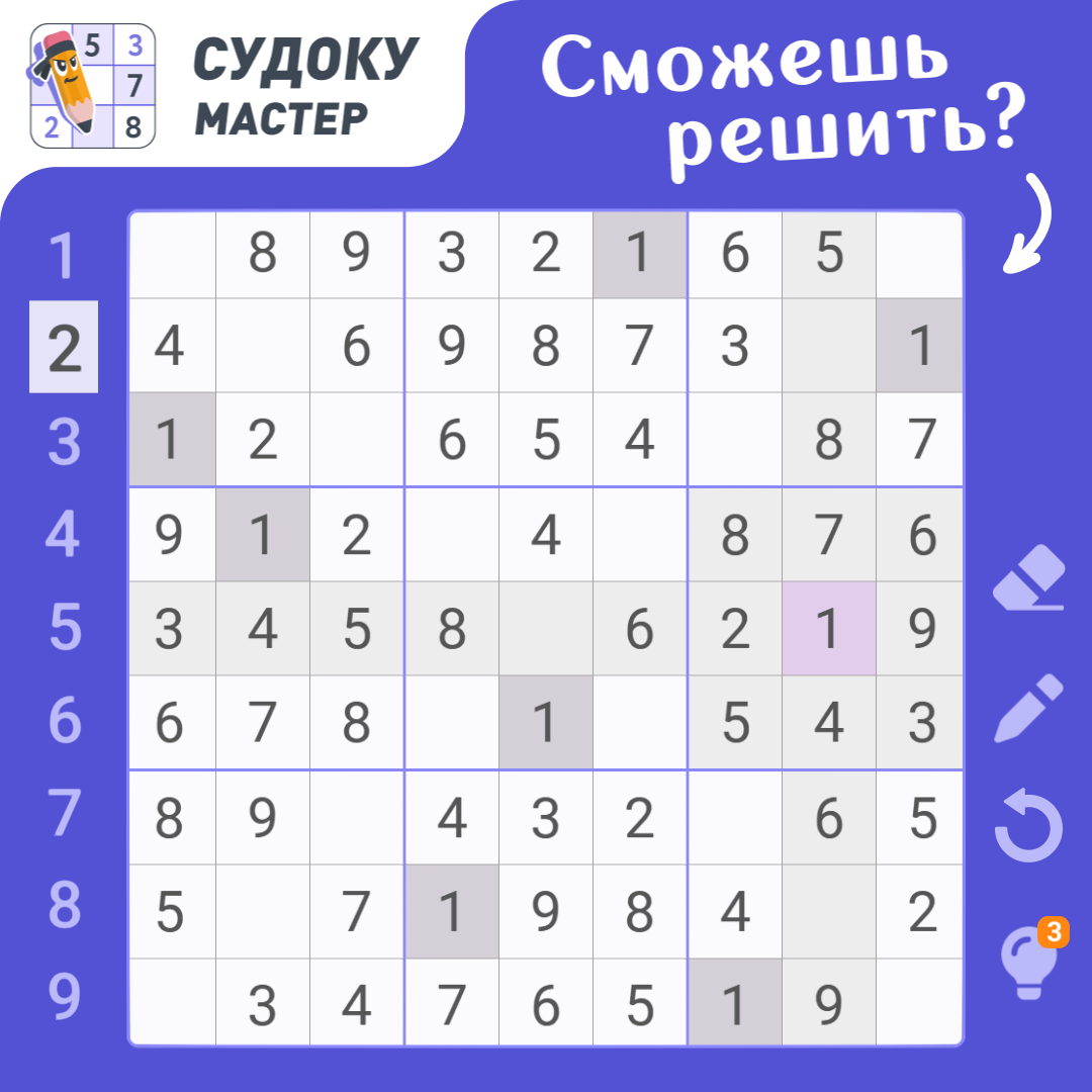 Всем привет! Сегодня предлагаем решить вам такую задачу Судоку. Уже знаете, как правильно расставить здесь цифры? Тогда вперед, введите свой ответ!