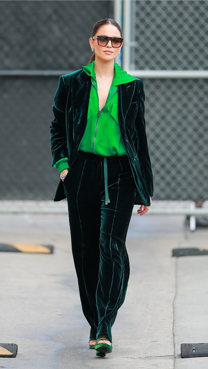 Эйса Гонсалес еще недавно шокировала публику резким перевоплощением в блондинку, но быстро вернула свой естественный цвет волос. Вместо экспериментов с цветом волос звезда решила поработать с ярким гардеробом. Так, на шоу The Jimmy Kimmel Эйса пришла в бархатном костюме изумрудного оттенка, к которому добавила худи на молнии неоново-зеленого цвета и туфли в тон топу. Читайте также на нашем сайте: Дурной тон: 8 модных ошибок, которые совершает каждая женщина #эйса гонсалес #стиль #мода #мода и стиль #гардероб #знаменитости #звездный стиль