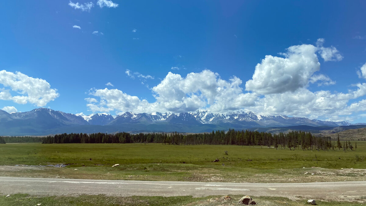 Едем дальше, в моменте говорим о границе с Монголией (и в итоге мы были близки 😂) А за разговором уже замечаем, как привычно зеленый, сменяет свой стиль - нас встречает Курайская степь. Виктория: А не доехать ли нам до Кош-агача?! Я: всеми руками ЗА! Мне конечно повезло нереально, подруга 3в1 - близкий человек, водитель и экскурсовод 🔥🔥🔥 Кош-агач считается самым засушливым и самым солнечным в Сибири. Растительности там нет никакой, и это очень необычно. Деревьев замечено тоже небыло))) Атмосферно выглядела коровка, которая встала посередине дороги, рядом с соответствующей табличкой села. Её продолжительное Мууу, звучало как добро пожаловать 🐄 Это было нашей финальной координатой в нашем путешествии, дальше решили не ехать. Развернулись и поехали на Марсово поле. В Кош-Агачском районе республики Алтай есть свой собственный Марс — и не один, а целых три. Необычные цветные горы с неофициальными названиями «Марс-1», «Марс-2» и «Марс-3». Мы выбрали «Марс-1» Координаты: 50.060358, 88
