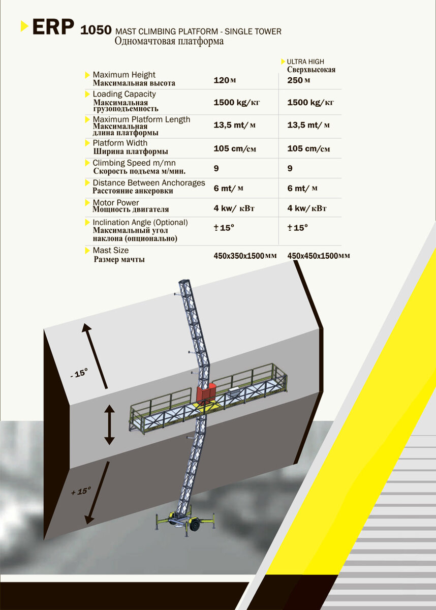 По сравнению со строительными лесами, грузопассажирские платформы — гораздо более действенный способ организовывать и проводить фасадные работы. К тому же, высота лесов ограничена отметками 60-100 метров, в то время как фасадный подъемник позволяет транспортировать грузы и людей на более высокие отметки. О том, на какие, мы еще обязательно расскажем. Кстати, строительные люльки тоже уступают по производительности, то есть с их помощью вы дольше будете выполнять те же работы. А чтобы понять почему так, предлагаем вам узнать о важных характеристиках этих ГПМ. Если же вы не хотите тратить время на изучение информации по вопросу, то мы рекомендуем вам альтернативный вариант. Получите компетентную консультацию специалиста ЛЮЛЬКА-РУ любым удобным вам способом прямо сейчас. Что представляют собой платформы мачтового типа ❔ Эти многофункциональные устройства являются надежными и безопасными, ведь все-таки, помимо грузов, на них перемещают специалистов, выполняющих высотные работы. Но за сч