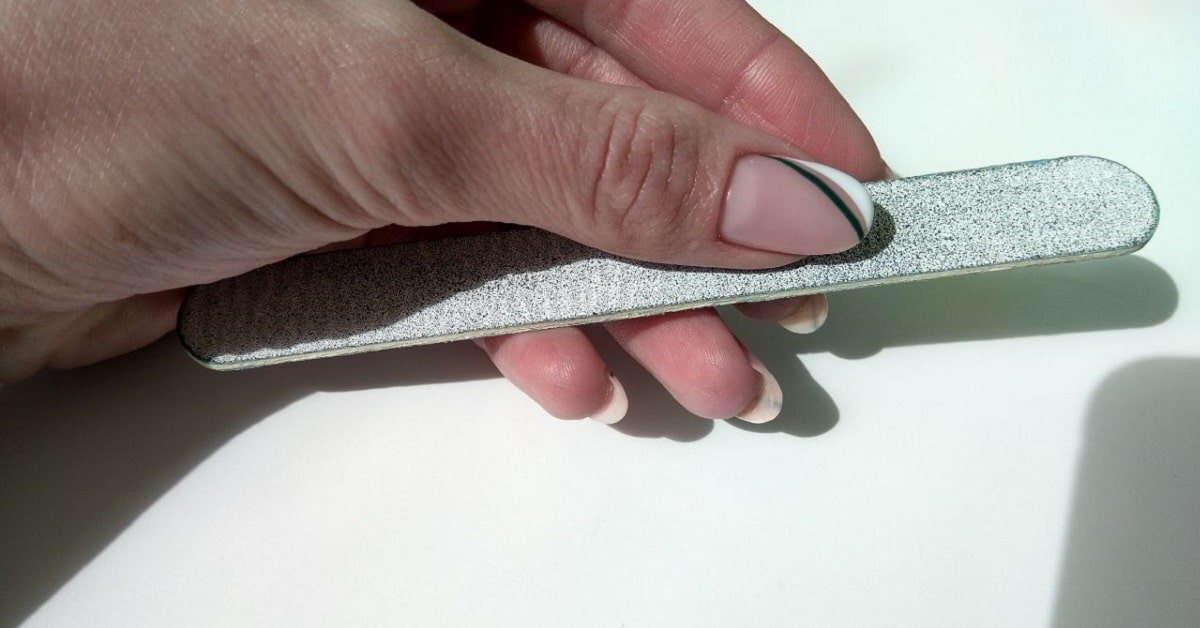 Очень важно для подобного маникюра использовать пилку с мягким абразивом. Она ни в коем случае не должна быть железной. Идеально подойдет пилочка на пенной основе. Отличная форма — банан, ведь именно у него будут подходящие уголки. Острых краев у пилочки быть не должно.