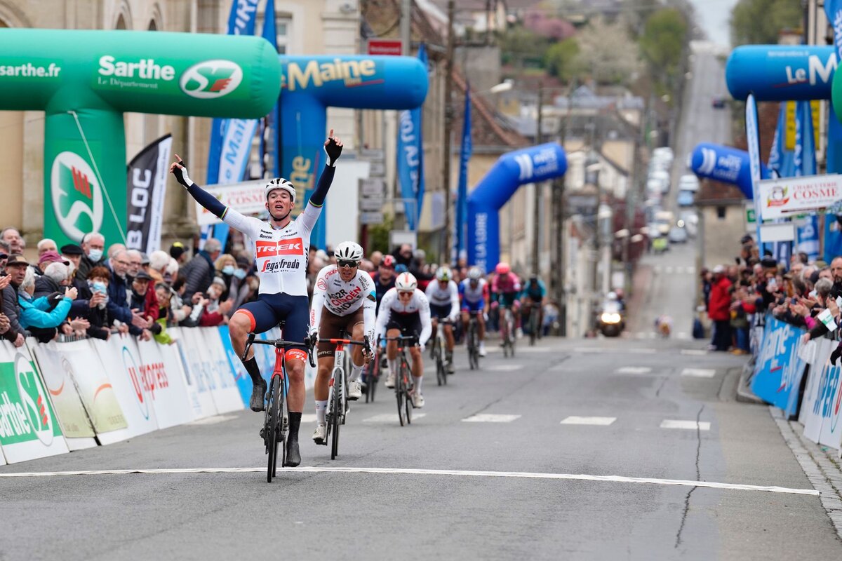 Мадс Педерсен выиграл первый этап велогонки Circuit Cycliste Sarthe: в Мамерсе датский гонщик из Trek — Segafredo был лучшим в сильной лидирующей группы, которой удалось избежать тисков пелотона. Бенуа Конефруа финишировал вторым, Аксель Зингл — третьим. Педерсен после этого этапа надел майку лидера этой французской четырёхдневной велогонки. В первый день Circuit Cycliste Sarthe — Pays de la Loire, как полностью называется гонка, пелотон проехал окрестности Мамерса, места в 45 километрах к северу от Ле-Мана. Этап состоял из 55-километрового большого круга с подъемами на Ле-Бельведер и Коль-де-Гард, которые нужно было пройти дважды, и малого круга протяженностью более 16 километров, который нужно было пройти 5 раз. Суммарно гонщики проехали 192,3 километра. В начале этапа образовалась ведущая группа из четырех человек: Алексис Гужар из B&B Hotels, Шон Куинн из EF — EasyPost, Александр Камп из Trek — Segafredo и Маэль Геган из Team U Nantes Atlantique объединились и оторвались более чем