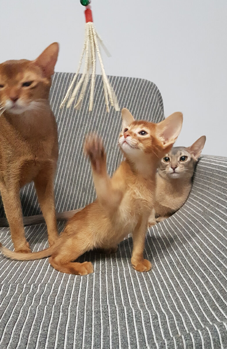 Наш выбор. Долгим и мучительным выбор наш не был. Назову пять причин, как в песне☺ Первая причина. Характер. У кошек Абиссинской породы характер замечательный: легкий, веселый, ласковый. Это активное животное не даром называют котопес - скачет, играет, носится, резвится. Говорят даже тапки хозяину приносит... Благодаря своей активности абиссинцы остаются до старости легкими и грациозными☺ Вторая причина. Аллергия, точнее ее отсутствие. У меня с детства аллергия на кошек, немного повозишься и все, насморк, слезы из глаз. А тут нет, ну не чудо ли) Причина - отсутствие подшерстка. У абиссинцев подшерсток практически не выражен, но играет важную роль, создавая фон для одного из четырех окрасов☺ Третья причина. Шерсть. Это одна из наименее проблемных пород в плане шерсти. Многие владельцы даже не замечают, как проходит линька. Кстати, такие неприятные события, как рвота шерстью- тоже весьма редкое явление. Абиссинские кошки не требуют расчесывания и мытья...ну только если очень хочется☺