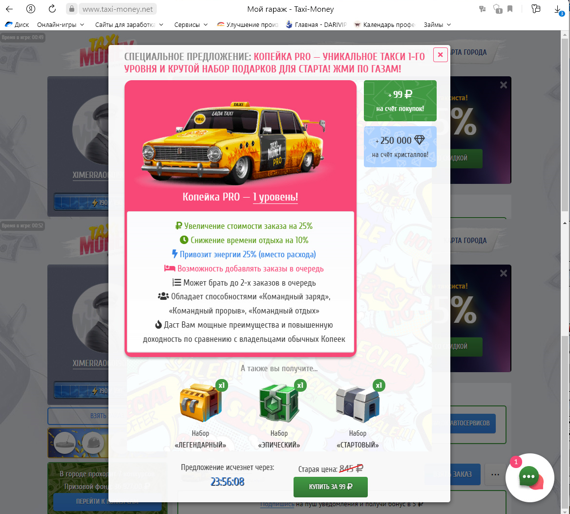 Прежде чем начать играть я оплатила предложенную акцию: По оплате: заплатить с кредитки снова не получилось, только с дебетовой карты. В остальном все прошло легко и быстро, деньги зачислили мгновенно, все бонусы тоже. После финансовых манипуляций я начала играть. У меня две машины - стандартная копейка, которую предоставила сама платформа и копейка pro, которую я приобрела: Я выбрала копейку pro и нажала "взять заказ". Внизу появились профили пассажиров с указанием параметров заказа. "Конкурсные" заказы доступны только владельцам премиум-аккаунтов, поэтому я смогла взять заказ-"халтуру". Выбрала пассажира, решила легкий математический опрос и "повезла" первую клиентку. Но не все так просто)) Вдруг стали появляться какие-то странные вопросы, и мне нужно было выбрать один из ответов. Некоторые ответы "краснели" и вызывали негодующую реакцию пассажирки в чате, а некоторые воспринимались положительно и были зеленого цвета (пример вверху скрина). В итоге оказалось, что клиентка осталась