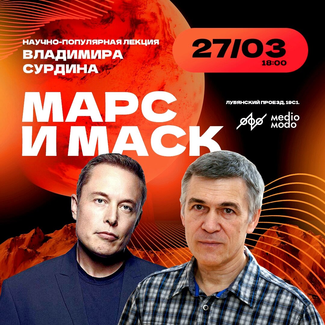 27 марта приглашаем на лекцию «Марс и Маск»! Какова будет новая обитель человечества? Перспектива колонизации Марса уже более века занимает умы ученых и футурологов. На сегодняшний день поверхность красной планеты изучена детальнее поверхности Земли, а фантастическая идея о запуске пилотируемых программ вот-вот превратится в реальность. Что ожидает участников первых миссий? О возможности реализации самого грандиозного проекта в истории человечества, о задачах и преградах, стоящих перед астронавтами и инженерами ближайшего будущего расскажет астроном, старший научный сотрудник Государственного астрономического института имени П.К. Штернберга Владимир Сурдин. Подробности мероприятия и билеты доступны по ссылке. #астрономия #космос #наука #технологии #марс
