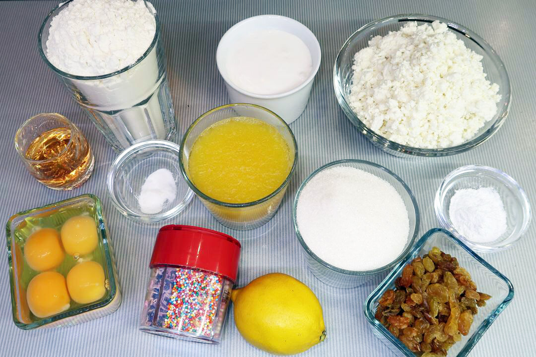 Сегодня мы будем готовить творожный пасхальный кекс. Украшением пасхального стола традиционно являются куличи, крашеные яйца и творожная пасха. Я хочу вам предложить приготовить еще и пасхальный творожный кекс. Рецепт приготовления кекса с творогом, изюмом, коньяком и лимонным соком и цедрой довольно прост. Это бездрожжевая выпечка, на приготовление которой, у вас уйдет, буквально, полтора часа. Кекс получается очень нежным, просто тающим во рту. Украсить его можно белковой глазурью и кондитерской посыпкой. Для приготовления творожного пасхального кекса нам понадобятся следующие ИНГРЕДИЕНТЫ: ТВОРОЖНЫЙ ПАСХАЛЬНЫЙ КЕКС ПРИГОТОВЛЕНИЕ: Видео приготовления: РЕЦЕПТ ПРИГОТОВЛЕНИЯ: В глубокой чашке соединяем куриные яйца, сахар и ванилин. С помощью миксера взбиваем смесь на протяжении 7-10 минут до получения пышной светлой массы. С помощью тёрки с мелким полотном снимаем цедру с одного лимона и выжимаем сок. Я буду это делать при помощи ручной соковыжималки. Добавляем в полученную массу цедр