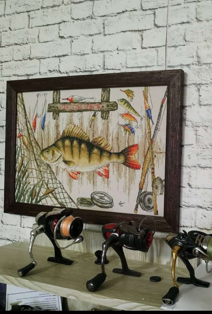 Видео об этой работе у меня нет, это было время ,когда я вернулась к вышивке после увлечения куклами и не вела своего канала или Рукодельной странички . ☑️Набор ТМ Марья Искусница "Удачной рыбалки" Так как старший сын профессионально занимается рыбалкой и ведёт с друзьями канал об этом интересном занятии ( ссылку на канал я вам обязательно оставлю), я решила ,что такой подарок он точно оценит и будет рад ему Тихо, тихо , неспеша вышилась эта красота , а потом и оформилась. Именно в этой работе ,я первый раз узнала ,что такое равномерка и ниточки Finka. Комплектующие набора отличного качества. В работе очень много бэкстича, но он то и творит чудеса . Равномерка замечательная, схема напечатана на очень больших листах и значит отлично читается. Жалею, что не запаслась наборами этой фирмы, цены сейчас на них сейчас достаточно дорогие, но результат порадует - это точно . Знаю,что многие вышивальщицы ценят и любят этого российского производителя и вышивают его много и часто. Ссылка на