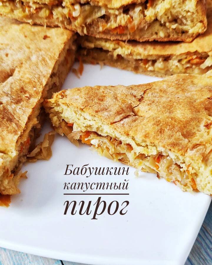 Бабушкин капустный пирог... Ещё одна воскресная выпечка... А родом она из детства. Моя бабушка очень любила печь большие пироги.. Чтобы на всю семью.. Она,конечно пекла в русской печи. Сейчас этот атрибут встретишь редко. Русская печка испокон веков не только служила для приготовления блюд, но и являлась символом домашнего очага. Многие жители мегаполисов думают, русская печь это пережиток прошлого. Однако, и сегодня владельцы частных домов предпочитают отводить центральное место в кухне под строительство печи, не только ради моды , но и с целью разнообразить собственное меню вкусной и здоровой пищей. Как бы то не было, мы сегодня испечем пирог в обычном духовом шкафу. Из этого набора продуктов получается два больших пирога с тонкой хрустящей корочкой и сочной начинкой.. #бабушкинакухня #вкуснокакубабушки Ингредиенты: Для теста:, Кефир (комнатной температуры) , Масло сливочное , Соль , Сода пищевая , Мука , Для начинки:, Капуста , Лук репчатый (крупный), Морковь крупная , Масло растите
