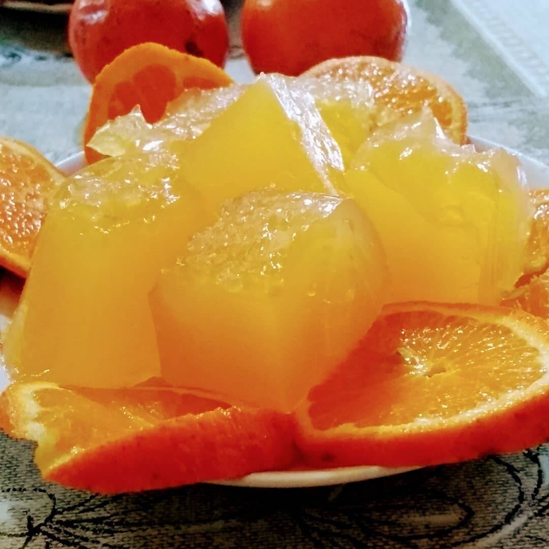 Для настроения вкусный и яркий десерт из мандаринов 🤩 Это очень вкусно. Ингредиенты: мандаринового сока, сахара, тёплой кипячёной воды, желатина Способ приготовления: Приготовить все необходимые ингредиенты. Желатин залить тёплой водой, перемешать и дать настояться до набухания. В мандариновый сок всыпать сахар и хорошо перемешать до растворения сахара, влить разбухший желатин, перемешать и немного подогреть сок с желатином на плитке при этом помешивая до полного растворения желатина. Вылить смесь в формы, дать остыть и проставить в холодильник для застывания желе 😋 приятного аппетита.