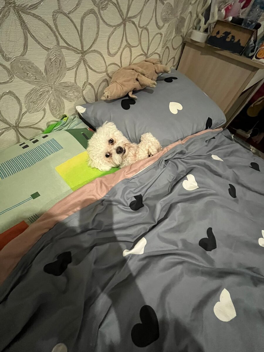Первому бишону было позволено абсолютно всё, практически без ограничений, от чего, конечно, он стал чересчур наглым и перестал чувствовать стыд даже за то, что наглейшим образом крал еду со стола.