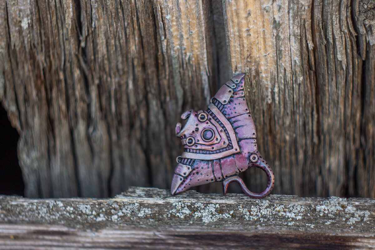 Биомеханический скат. Один из обитателей Bioo-Art аквариума.Размах крыльев 58 мм.Полимерная глина, акрил металлик, лак.