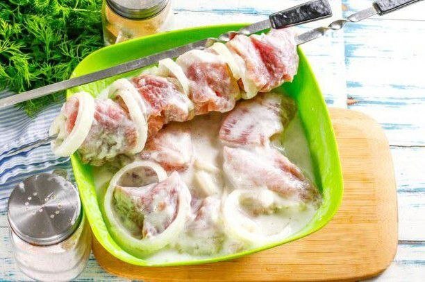 Маринование шашлыка из свинины — рецепт с фото пошагово 👍 Время приготовления: 10 мин Очень вкусным получается шашлык из свинины, замаринованной в кефире. От кусочка такого блюда очень трудно отказаться. Для маринования подойдет кефир любой жирности и любого срока: свежий или кислый. Кефир - это универсальный маринад для свинины. Он размягчает мясо и волокна, делает его более мягким и сочным. При добавлении различных специй и пряностей может с легкостью заменить различные дорогие маринады. Кефирная пленка при обжарке создаст румяную корочку на кусочках мяса и придаст сливочный вкус блюду. Выбирайте любую жирность напитка - вкус шашлыков от этого не зависит. Ингредиенты: Кефир — 500 Миллилитров (любой жирности) Лук репчатый — 1 Штука (крупный) Соль — 1 Чайная ложка Перец черный молотый — 0,5 Чайных ложки Свинина — 1 Килограмм (жирная) Приготовление: Подготовьте указанные ингредиенты. Еще раз аккуратно все перемешайте и поместите на холод для маринования, примерно на