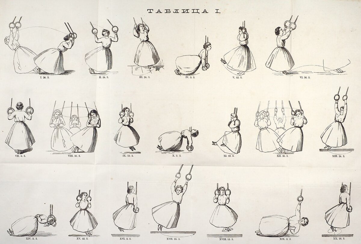 Гимнастика для девиц в применении к различным возрастам для общественного и домашнего воспитания. Введена для руководства в С.-Петерб. ин-ты ведомства императрицы Марии. СПб.: Печатня В. Головина, 1869. Автором — доктором медицины и хирургии — были описаны упражнения, предназначенные специально для женщин. Доктор полагал, что будет неправильно, если женская гимнастика будет состоять «из повторения упражнений, предназначенных для мужского пола, с той разницей, что из числа их исключены некоторые упражнения неудобные, неприличные или слишком утомительные для девиц». -- Рекомендовала к изучению Миссис Гоббс, преподаватель этикета, вокальный тренер и доктор любовных наук из России. Больше материалов здесь: Сообщество ВК https://vk.com/gobbscollege Телеграм-канал https://t.me/gobbscollege