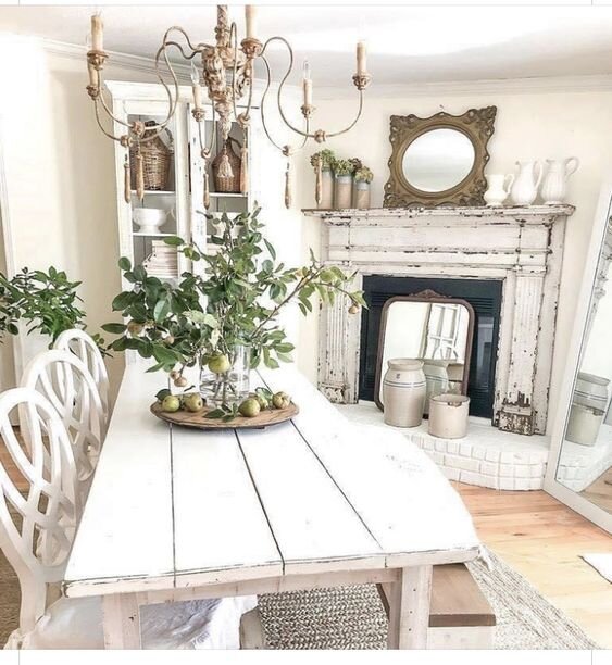 В переводе с английского шебби (shabby) означает потертый, обшарпанный, Shabby Chik — букв. «потертый шик». Стиль Шебби-шик очень органично вписывает в интерьер старые предметы — антикварные и раритетные или специально искусственно состаренные — поэтому интерьеры в этом стиле выглядят изысканно и дорого, но в то же время по-домашнему тепло и уютно. Дороговизна в таких интерьерах не показная, холодно-музейная, — «обшарпанность и потертость» придают интерьеру теплоту и камерность. Следы времени – потертости, трещины – делают мебель менее претенциозной, нежели мебель в стиле периода Людовика XVI «с иголочки». Главный постулат этого стиля – никаких темных красок. Интерьеры сделаны в нежных оттенках, особой популярностью пользуются разновидности голубого, кофейного, белого, светло-лимонного, розового, градации кремовых оттенков. Допустимо использование нежно-зеленого, сиреневого, лилового цвета. Такой интерьер наполнен нежностью, поэтому у него, как правило, нет темных или ярких расцветок.