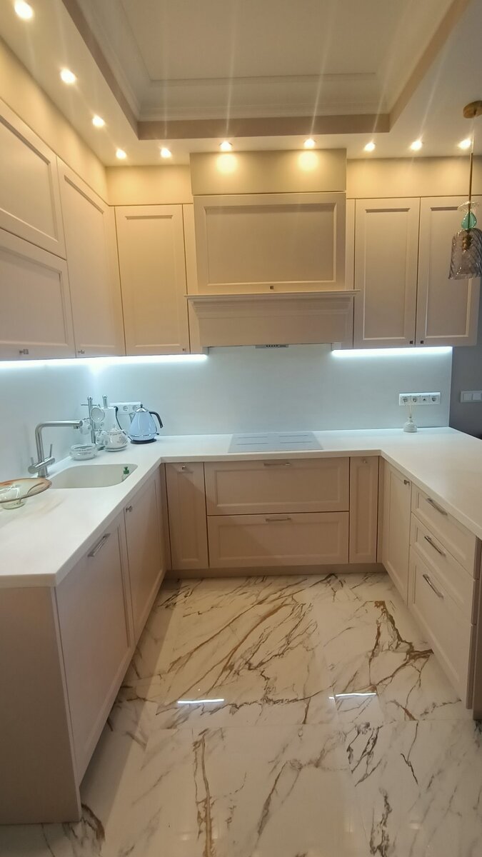 По вечерам здесь ведутся неспешные беседы за кружкой ароматного чая, утром вся семья в спешке собирается на работы, перекусывая бутербродами. Учитывая, как правило, небольшие габариты этого помещения, его обустройству нужно уделять особое внимание. Ведь кухня должна быть не только уютной, но и максимально функциональной. ⠀ Для того чтобы интерьер помещения был максимально гармоничным и удачным, нужно правильно выбрать, как отделочные материалы, так и мебель. ⠀ Представляю Вашему вниманию современную, популярную в последнее время у моих заказчиков крашенную кухню, выдержанную в стиле Неоклассика. ⠀ А если присмотреться, то можно увидеть встроенную гладильную доску, подсветку и обеденный столик по подоконнику. Как Вам?