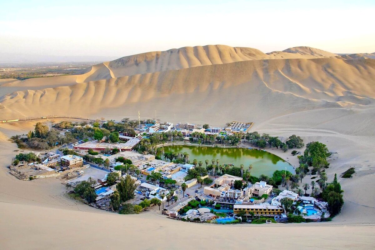 В глубине пустыни среди вечных песков существуют небольшие островки жизни, на которых бурлит жизнь, растут деревья, журчит вода, и повсюду слышатся птичьи трели. Эти райские уголки или как их еще именуют «жемчужинами пустыни» называются оазисы. Образуются они посреди пустынной местности около природного или рукотворного источника. Все оазисы от маленьких водоемов, вокруг которых растут финиковые пальмы, до небольших населенных городков по-своему интересны и неповторимы и их стоит увидеть. Хуакачина – купель принцессы. Этот тропический городок, расположенный вокруг небольшого естественного водоема в перуанской пустыне Сечура, стал настоящей курортной жемчужиной американского континента. На территории городка постоянно обитает примерно 200 человек, которые занимаются земледелием и туризмом. В Хуакачина есть все для комфортного проживания и отдыха: магазины, гостиницы, хостелы, кафе, рестораны, и даже общественная библиотека. Жители близлежащих городов приезжают сюда отдохнуть от городско