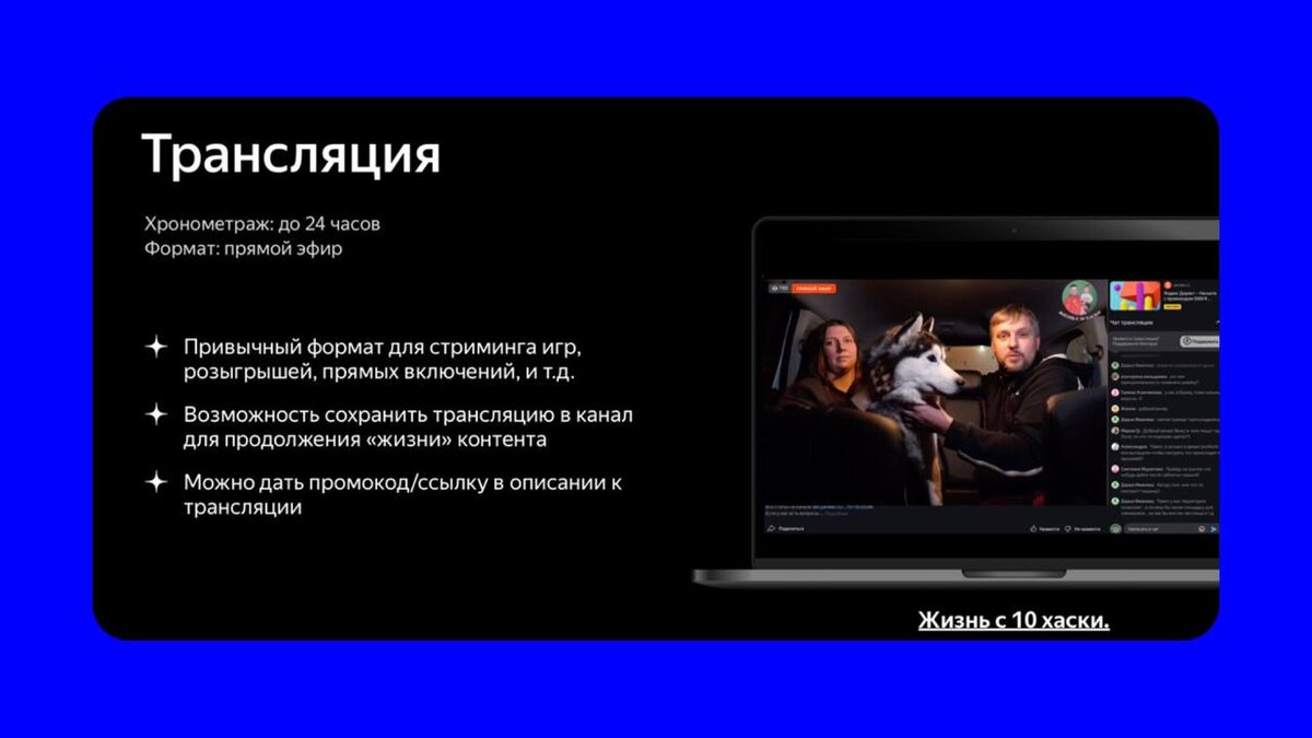 5 ФОРМАТОВ КОНТЕНТА: Видео | Ролик | Пост | Статья | Трансляция Сегодня разберем формат: трансляция (прямой эфир) Хронометраж: до 24 часов Преимущества: • Привычный формат для стриминга игр, розыгрышей, прямых включений, и т.д. • Возможность сохранить трансляцию в канал для продолжения «жизни» контента • Можно дать промокод/ссылку в описании к трансляции ✨ 2 недели мы разбирали различные форматы контента в Яндекс.Дзен, давайте резюмировать: • Статьи позволяют больше раскрыть преимуществ продукта, погрузить человека в контекст и сделать призыв к действию в конце. • Посты с фото/галереями позволяют визуально показать продукцию и коротко рассказать о самом главном. • Видео любого формата (вертикальные, горизонтальные и квадратные видео - хороший формат для обзора товара или услуги). 🔊 ФОРМАТЫ РЕКЛАМЫ: Можно интегрировать продукт в любой из форматов. • Прямая реклама со ссылкой (интеграция, обзор) • Нативная реклама • Эксклюзивный контент (обзор продукта в видео, статье или трансляции