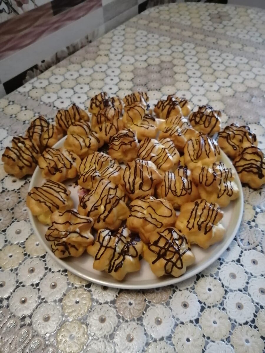 Заварное - это особый вид теста. Его сначала варят, а потом пекут. Это пластичное тесто хорошо подходит для пирожных. Оно выпекается при высокой температуре. При выпечке ни в коем случае нельзя открывать духовку, иначе пирожные потеряют объем. Заварные пирожные выпекаются 25-30 минут в духовке при температуре 200-225 градусов (с обдувом - 180-200 градусов) На 12 пирожных: 150 гр муки 500 мл воды 1 щепотка соли 65 гр сливочного масла 4 яйца Просеять муку. Налить воду в кастрюлю, добавить соль и сливочное масло. Воду довести до кипения. Снять кастрюлю и тут же всыпать туда муку. Хорошо перемешать и поставить снова на плиту. Помешивать на среднем огне, пока не образуется вязкая масса. Снять кастрюлю с огня. Вбить яйцо и сразу же размешать. Выложить тесто в миску. Добавить по одному оставшиеся яйца. Вливать следующее яйцо, только когда предыдущее хорошо размешано. Полностью остудить массу. Для пирожных взять кондитерский мешок для крема с насадкой в виде звезды. Постелить на противень перг
