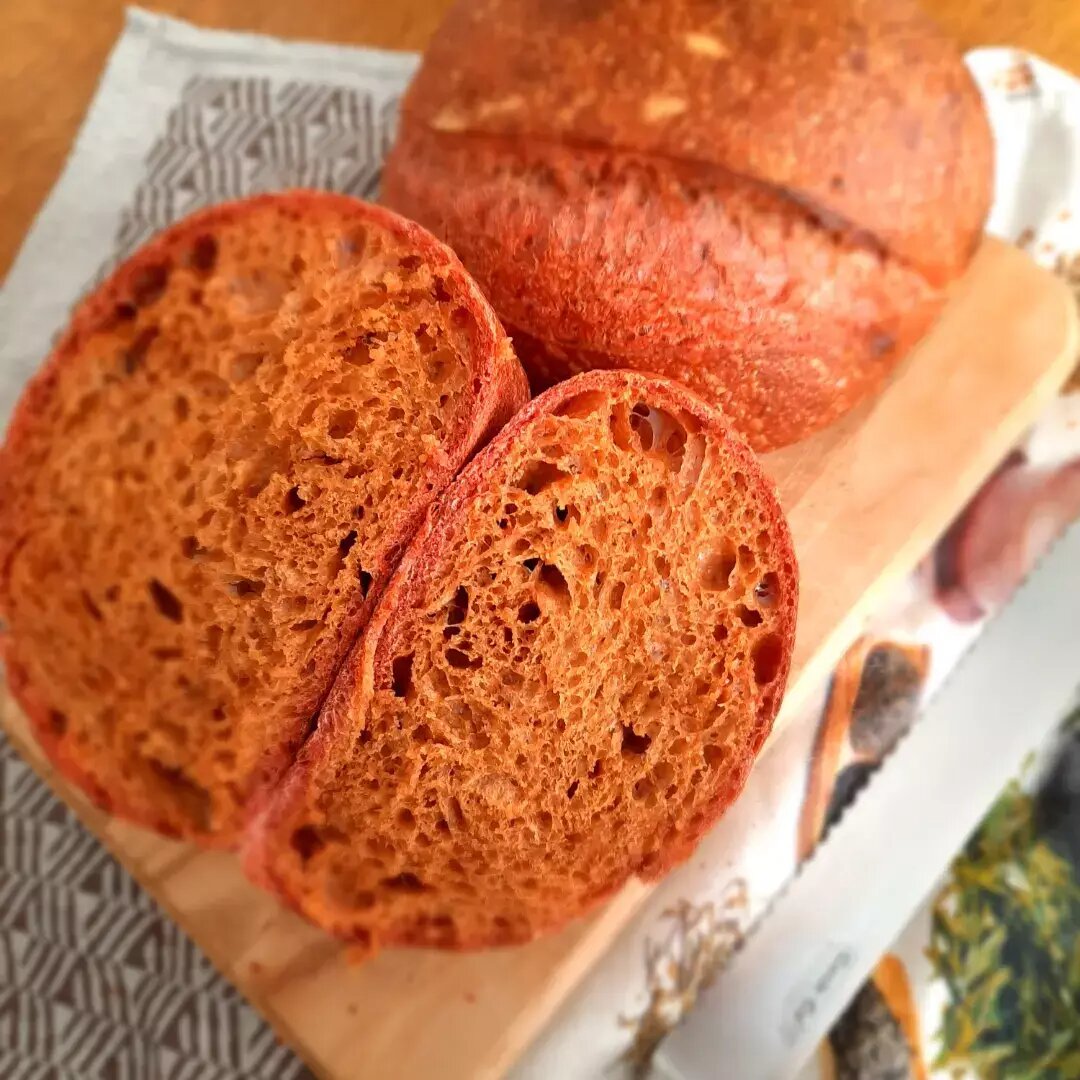 🌞Решила разнообразить свой хлеб и добавить в него немного красок🌈 🌞Хлеб получился просто фантастическим, с пушистым мякишем и тонким ароматом и вкусом, а цвет...🌷 🌈Рецепт: Ингредиенты: 🔸️ пшен. закваски , 🔸️ воды , 🔸️ пюре из запеченной в духовке и пюрированной свеклы. , 🔸️ мука пш в/с , 🔸️ соли , 🔸️ сахара Способ приготовления: 🌼Смешиваем все ингредиенты кроме соли и оставляем на аутолиз минут на 40-60.(тесто получается достаточно мягким). 🌼После аутолиза добавляем в тесто соль и вымешиваем его до гладкости, затем сахар и снова до гладкости, но без фанатизма😉. 🌼Убираем тесто на ферментацию при комн. температуре до 24°. 🌼Каждые 30-40 мин делаем складывание 2-3 раза. У меня брожение заняло 5 ч при 21°, но вы ориентируйтесь по своему тесту, т.к. условия у всех разные. 🌼Далее предформовка (15 мин отдых), формовка. Я делила тесто на 2 части. 🌼Расстойка холодная при 5-6° примерно 18 ч, либо в тепле до 24°- заготовка должна хорошо вырасти и стать очень пышной. 🌼Делаем надр