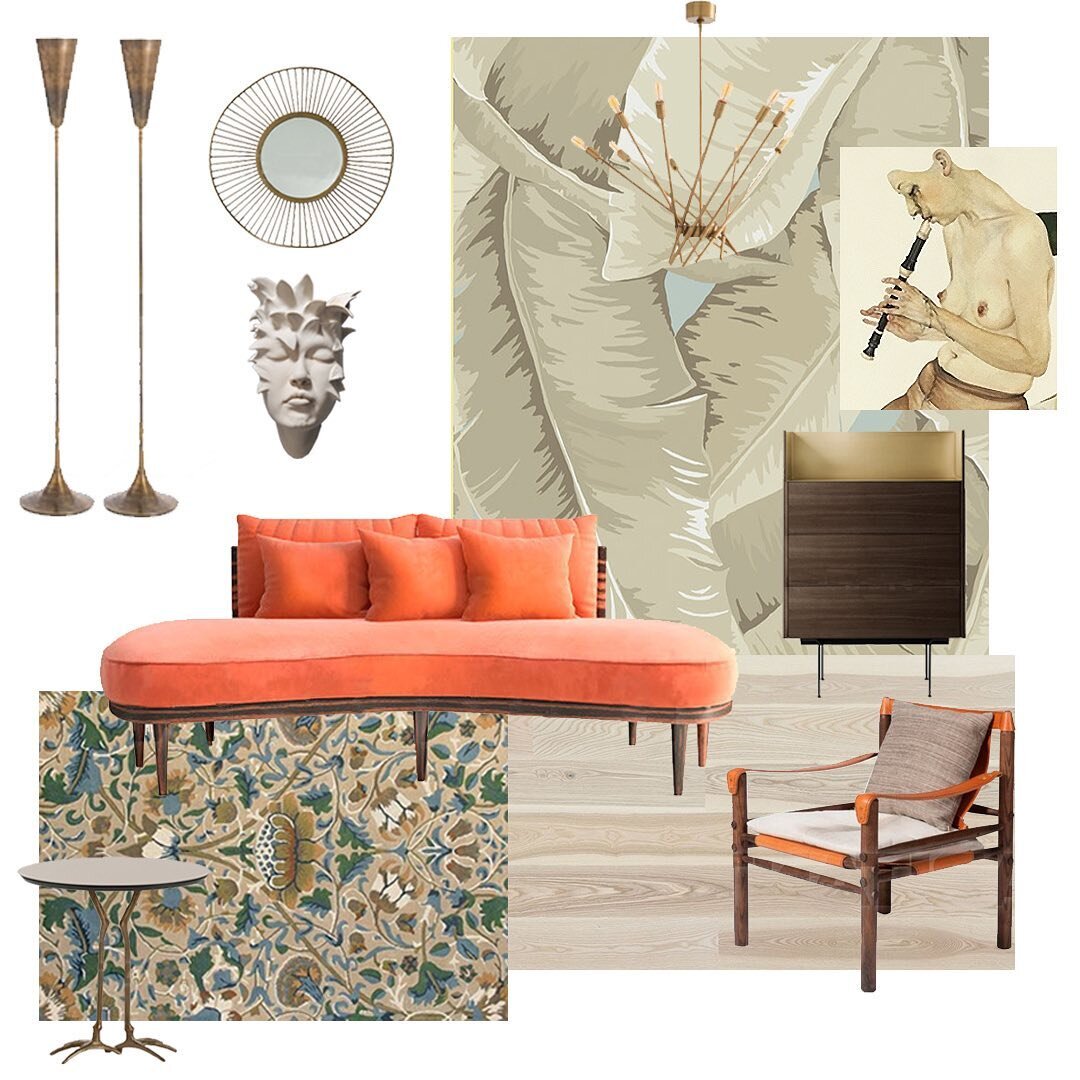 Прохладный элегантный #санузел в сочетании с яркой, энергичной #гостиной.