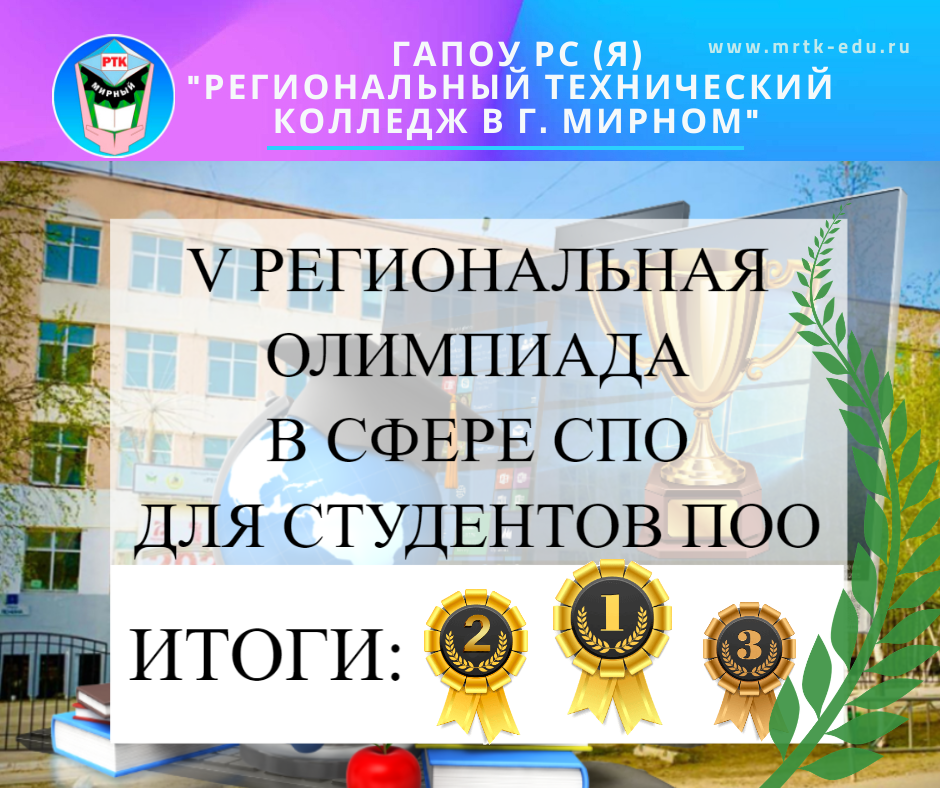Подведены итоги V Региональной Олимпиады в сфере профессионального образования в МРТК. 23 марта 2022 года в ГАПОУ РС (Я) «МРТК» проведена V Региональная Олимпиада в сфере профессионального образования на 2021-2022 уч.г., сообщила Екатерина Сыбенова, заведующая методическим отделом колледжа. Форма проведения: дистанционное компьютерное тестирование. Общее количество участников - 1067 человека, из них 594 студенты МРТК. Организации, которые приняли участие: ГБПОУ РС(Я) Якутский медицинский колледж ГАПОУ РС(Я) Якутский промышленный техникум имени Т.Г. Десяткина ГБПОУ РС(Я) Якутский коммунально-строительный техникум ГБПОУ РС(Я) "Сангарский многопрофильный лицей" ГБПОУ РС (Я) "Усть-Алданский техникум", ГАПОУ РС(Я) "Якутский технологический техникум сервиса", ГАПОУ РС(Я) Якутский технологический техникум сервиса им. Ю.А. Готовцева, ГБПОУ РС(Я) Якутский сельскозяйственный техникум, ГАПОУ РС(Я) Якутский автодорожный техникум, ГБПОУ РС(Я) Вилюйский профессионально - педагогический колледж им.