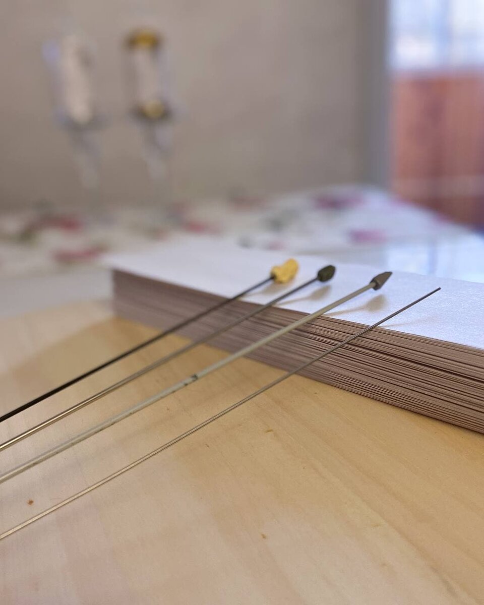 В нашем деле все начинается с бумаги, однако ей посвятим 2 следующих поста. А вот для спиц достаточно одного. ⠀ Уже в далеком 2014 году (как быстро летит время) попробовала крутить первые свои трубочки вовсе не на спицы, а на деревянные шпажки. Так меня учил ютуб.🤪 Однако сейчас уже и не встретить мастера по плетению, который пользуется таким старым методом. ⠀ Сегодня мы все гоняемся за самыми тонкими спицами и стараемся освоить кручение если не на «1», то хотя бы на «1,2». Что это за цифры, сейчас для начинающих👇 поясню. ⠀ 🤗Это диаметр спицы. У мастеров в ходу диаметры от 2 мм до 0,8 мм. Тоньше не встречала. А вот толще спицы есть. Например, 2,5 мм. И даже знаю одного мастера, который такими пользуется (успешно, кстати😉). Но все же в обиходе «стандартного мастера» более тонкие инструменты. ⠀ 😃Я лично новичкам советую начинать с диаметра 2 или 1,8 мм. Такие спицы можно найти в магазинах для рукоделия или поискать того, кто поставляет в розницу спицы Киршнера – это специальные
