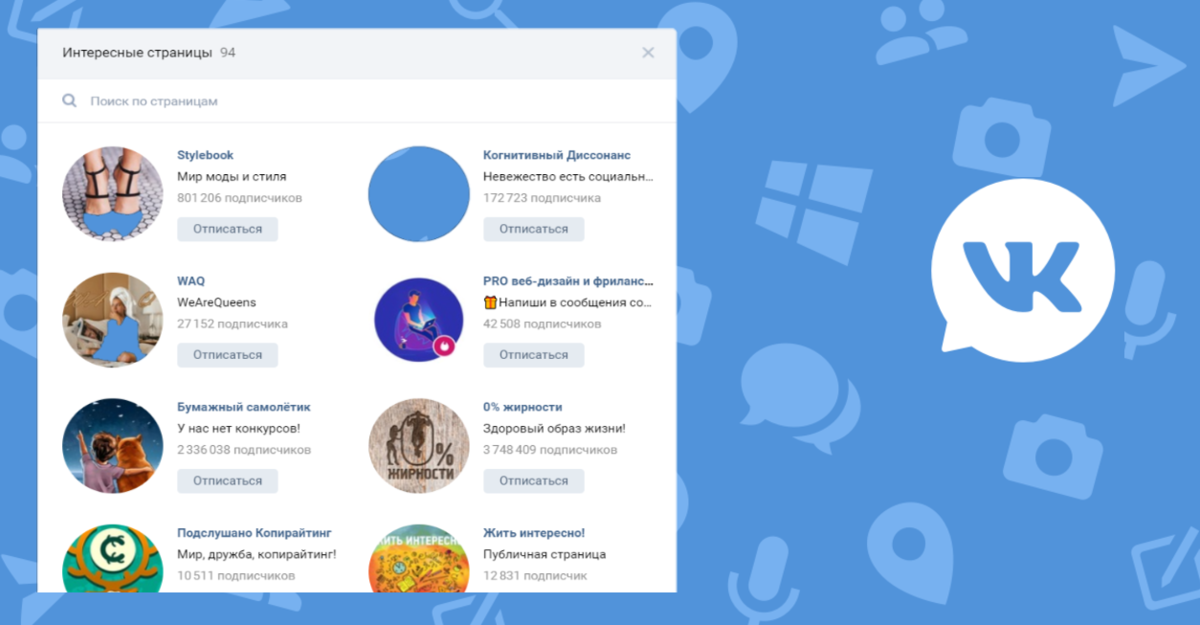 - На какие группы и публичные страницы в ВК вы подписаны.