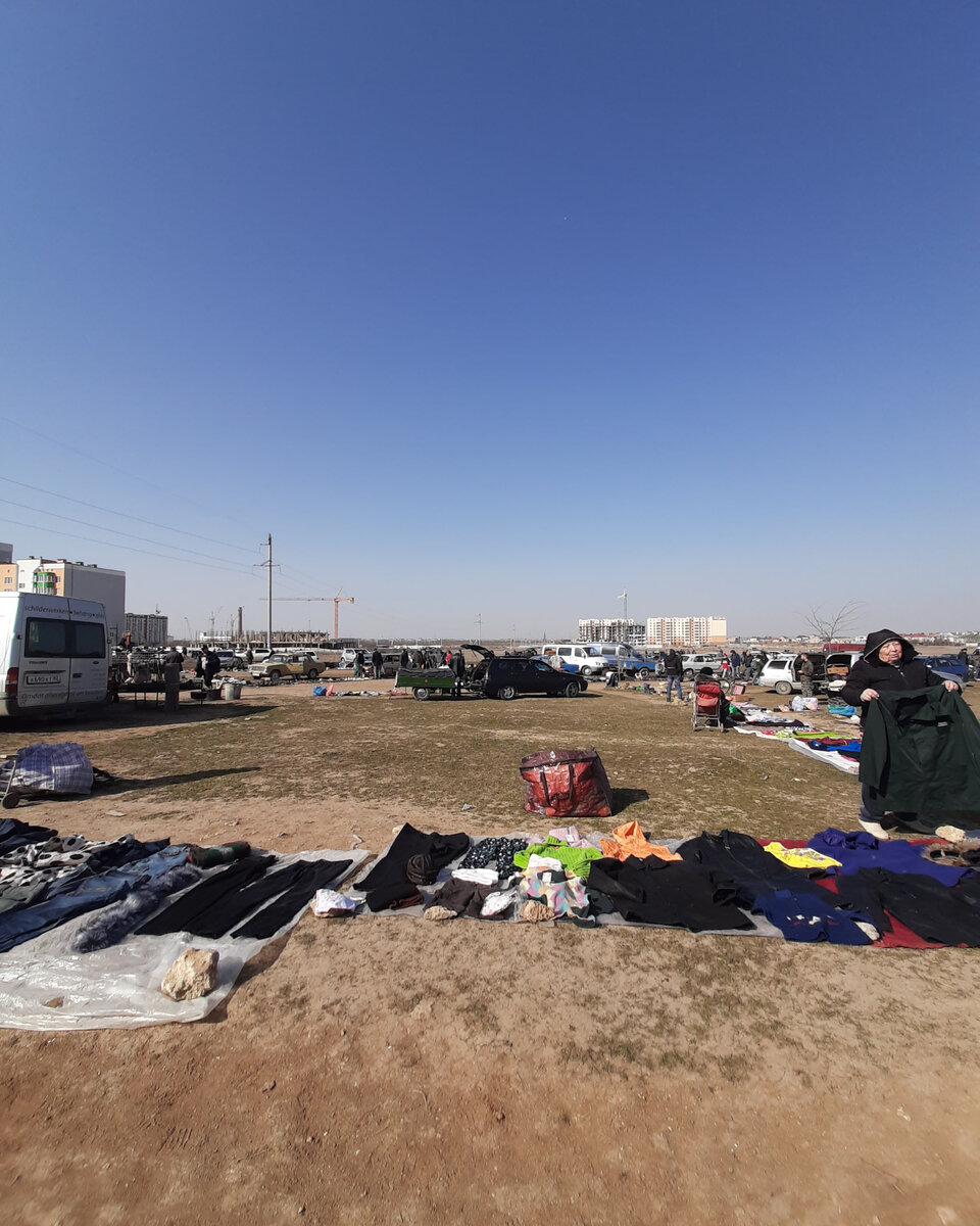 Наконец-то установилась сухая и почти солнечная погода и блошиный рынок в Евпатории развернул свои незамысловатые "прилавки" прямо в поле.