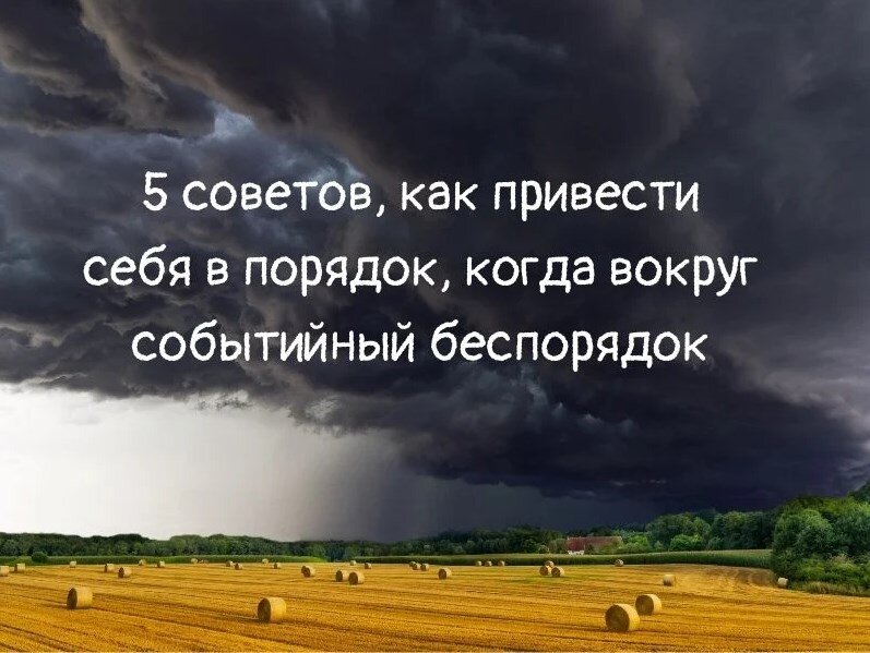 5 советов, как привести себя в порядок, когда вокруг событийный беспорядок Совет 1. Почувствуйте огромный мир Если вы ощущаете себя ребенком в огромном непонятном мире взрослых, перышком, которое гоняет ветер, лодкой, которой играют волны океана, сконцентрируйтесь на чувствах, в них – ваша сила. Чувствуйте что угодно, думайте, как вы беззащитны, как вам страшно, неуютно, что вас заставляет раздражаться, гневаться. В процессе таких размышлений вы будете освобождаться от лишних дум, примерно как корабль сбрасывает с себя лишний груз, чтобы не утонуть. Станет легче, станет понятно, куда плыть, появятся силы. Совет 2. Будьте эмоционально смелыми Чтобы почва под ногами оставалась твердой, почаще заглядывайте в глубины своей души. Вы так и будете ходить по шаткой земле, с адской болью проламывать кулаком стену, не видя открытой дороги, плакать по ночам и просыпаться с опухшим лицом, страдать от постоянной тревоги, пока не наберетесь смелости посмотреть в глаза своим чувства. Начните разб
