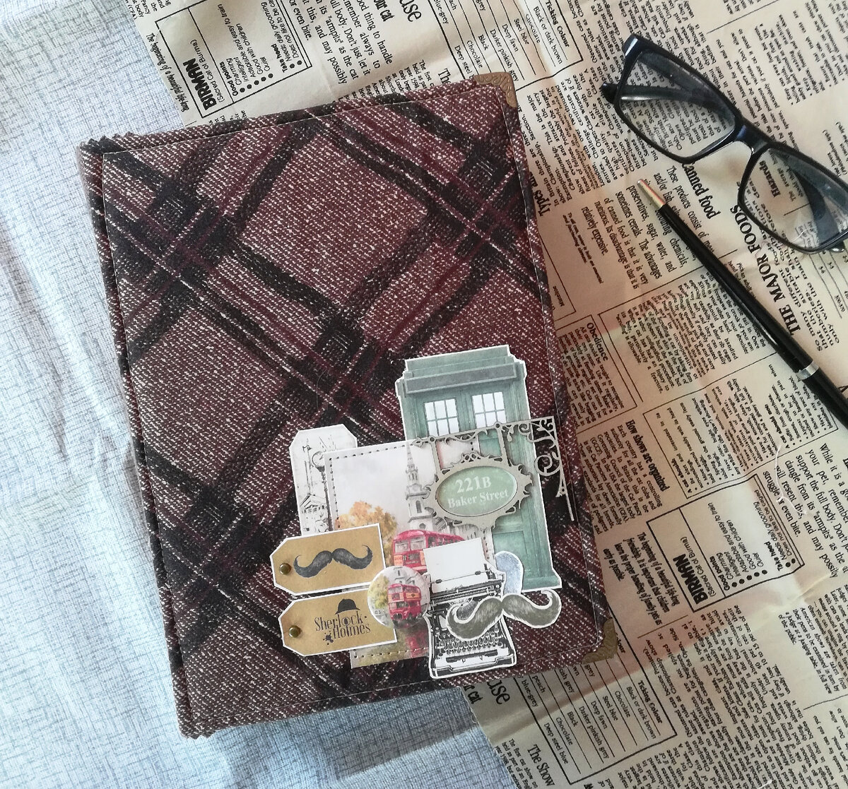Обложка из переплетного картона, обтянута тканью в клеточку - вы ее уже могли видеть в посте "Город Х" - там я эту ткань в качестве фотофона использовала)