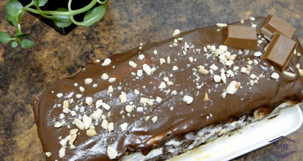 Когда глазурь подостынет, приступаем к украшению торта «Сникерс».