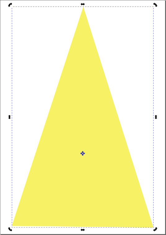1. откройте новый документ inkscape портретной ориентации. Нарисуйте треугольник инструментом звезда. Выберите его инструментом стрелка (s) и установите ширину и высоту 180 и 280 mm соответственно. Затем с помощью панели выровнять и расставить оттцентрируйте его по центру страницы. Цвет заливки f2eb23ff, непрозрачность 70, без обводки - установите это с помощью панели заливка и обводка.