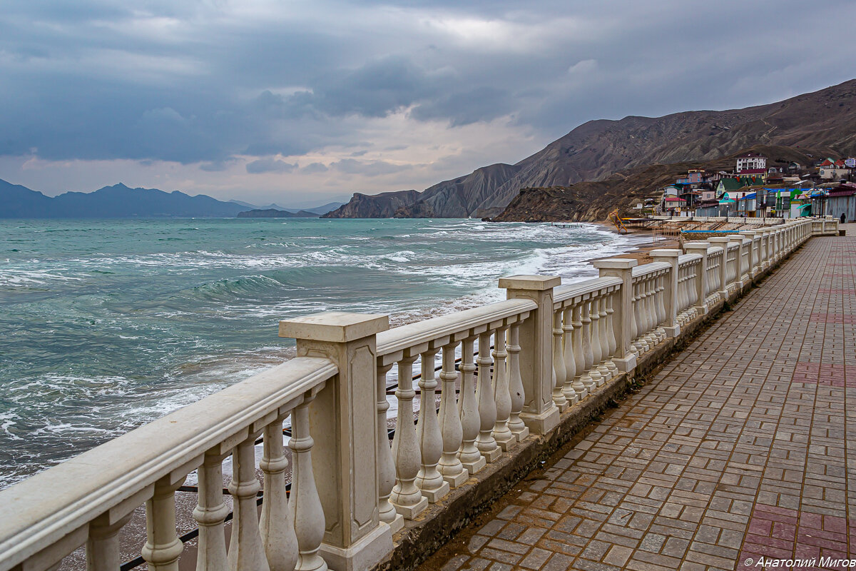 Небольшой поселок между Феодосией и Коктебелем. Очень популярное место летнего отдыха. Там много пляжей на любой вкус, редко бывает ветер и красивые пейзажи. Летом в Орджо, как его чаще называют, столпотворение. Не всегда удается найти свободное место на пляже. А я люблю приезжать сюда зимой. Сейчас я вам покажу, как выглядит зимний Орджо. 1. Гора Васюкова. Там за горой во времена СССР работал секретный завод, на котором испытывали и доводили до ума торпеды. Поэтому поселок был закрыт для курортников. 2. Причал для катеров и лодок. 3. Набережная в Орджоникидзе. 4. Указатель на Орджо на дороге Насыпное-Коктебель. 5. Вдалеке на горе видна телевизионная вышка. Там внизу Орджоникидзе. 6. Поселок стоит на берегу защищенной от ветров горами бухты Провато. 7. Теплый декабрь в Орджо. 8. Зимой на Центральном пляже. 9. Берег разрушается. Но именно там находится несколько небольших бухточек с закрытыми уютными пляжами, на которых любят отдыхать дикари и нудисты. 10. Чтобы пройти к тем бухтам, н