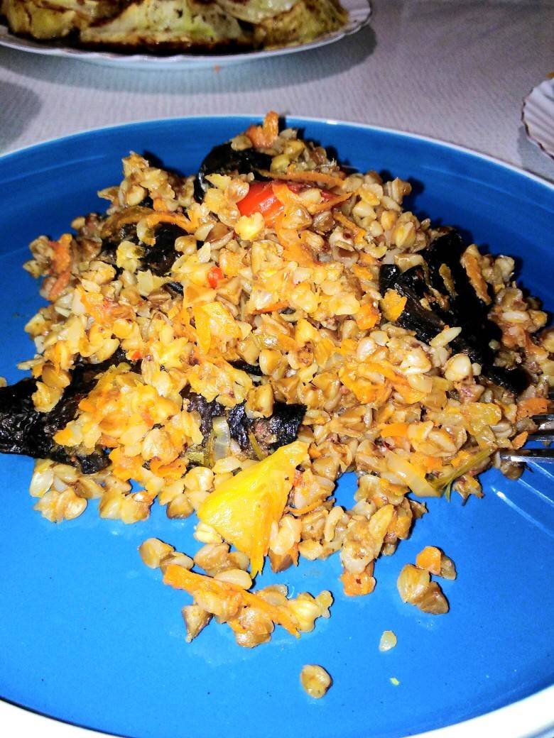 #пост Плов можно приготовить не только из риса и мяса, но и из любых круп с добавлением овощей и грибов. Получится не менее вкусно, сытно и полезно. Предлагаю приготовить гречневый плов с грибами. За вдохновение благодарю автора нашего сайта @cook_17411074 Олесю Боровикову Ингредиенты: гречки, воды, луковица, морковь, замороженных грибов, перца из лечо, кетчупа, Соль, перец, приправы Способ приготовления: Луковицу очистить, порезать мелким кубиком и обжарить до розового цвета на сковороде с небольшим количеством растительного масла. Добавить морковь, перемешать. Жарить ещё пару минут. Добавить замороженные грибы, накрыть крышкой и тушить на медленном огне, чтобы грибы оттаяли. Перец порезать кубиками, положить на грибы. Добавить кетчуп и перемешать. Тушить под крышкой 5-7 минут. Добавить промытую гречку, влить 2 стакана воды, соль и приправы, перемешать. Готовить под крышкой на медленном огне до полного испарения воды. По желанию можно добавить свежую или сушеную зелень. Грибы можно ис