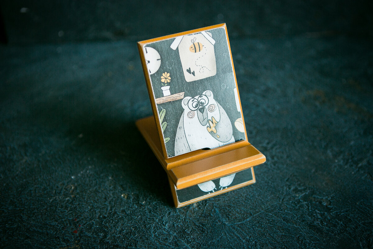 Разборные подставочки для телефона очень удобны в использовании, они занимают мало места, их удобно брать с собой. А еще на них можно отрабатывать различные техники декора и дарить друзьям и близким! Сегодня задекорируем подставку с использованием распечатки. Для этого нам понадобится: - заготовка подставки для телефона или планшета, купить можно здесь; - распечатка на лазерном принтере на обычной офисной бумаге. Скачать картинки - клей для декупажа (или ПВА); - краска акриловая; - лак акриловый матовый; - наждачная бумага №100 и №320 - кисть синтетика плоская 18-20 мм - резиновый валик, шпатель или пластиковая карта Я не грунтую предварительно работу, так как МДФ и акриловые материалы (краски и клей) не нуждаются в дополнительной адгезии. Так как мы используем для работы распечатку на обычной офисной бумаге плотностью 90 гр/м, нам не нужно покрывать предварительно область под картинку белой краской. Бумага достаточно плотная и не просвечивает. Поэтому мы сразу приступаем к приклеивани