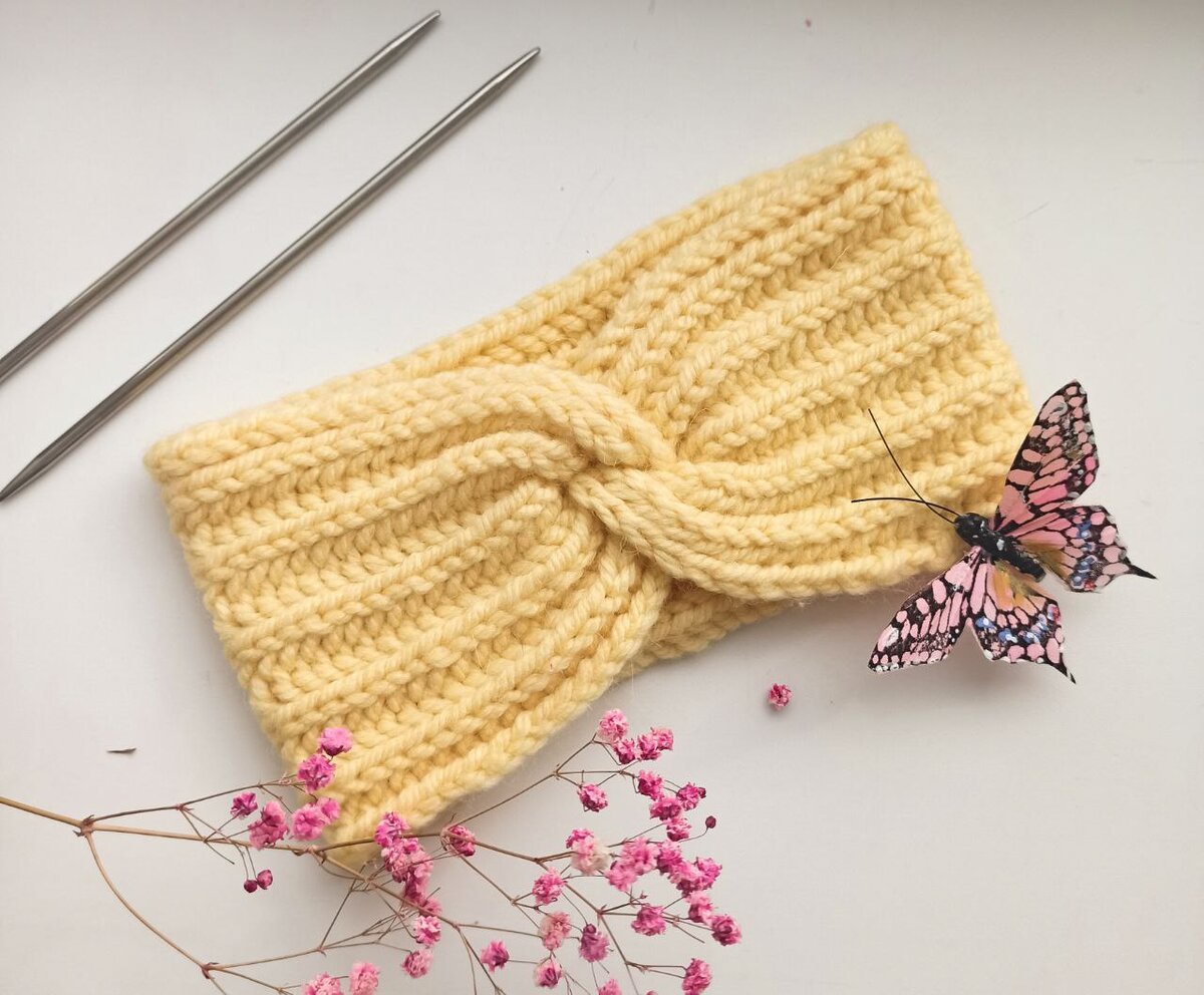 Актуальным аксессуаром на весну и осень является вязаная повязка спицами. Её вы вполне сможете связать самостоятельно за один день или даже вечер. Понадобятся: 2. Спицы размера 4-5 мм - подойдут любые - круговые, чулочные, просто две спицы. 3. Игла для сшивания или крючок. Процесс вязания: На спицы (у меня №5) набираем 13 петель. Если спицы меньше, можно набрать 15 петель и больше. Главное - нечётное количество петель. 1 ряд: снимаем кромочную; 1 лицевая, накид от себя, снимаем петлю не провязывая; 1 лицевая петля, накид от себя, снимаем петлю не провязывая и так повторяем до последней петли. Последнюю кромочную провязываем изнаночной. 2 ряд: снимаем кромочную; делаем накид от себя, снимаем петлю не провязывая; провязываем следующие петли (накид и снятая петля предыдущего ряда) лицевой петлей; делаем накид от себя, снимаем петлю не провязывая; провязываем следующие петли (накид и снятая петля предыдущего ряда) лицевой петлёй и так повторяем до последней петли. Последнюю кромочную про