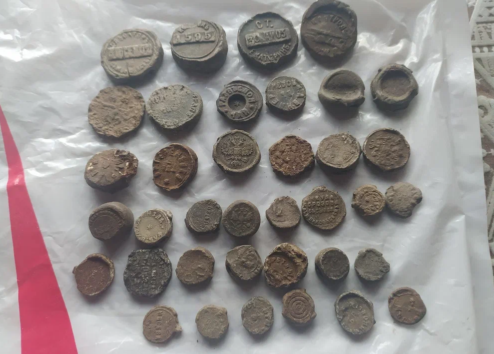 У меня тоже есть несколько красивых пломб времен Российской Империи. Конкретно сфрагистикой я не увлекаюсь, но артефакты из прошлого в виде свинцовых пломб просто приятны глазу. Недавно я уже писал про них: Пару дней назад нашел баночку с пломбами и решил сфотографировать самые интересные. Интерес для меня выражается простым правилом - если изображение слов или цифр на пломбе чёткое, то пломба интересная. Пермской ЖД СТ. Екатеринбург А595 - что это может значить? ПВЖД Просто государственный герб А здесь можно прочитать, что Морозова и Никольской Фабрика бумаж. Познаньский Лодзь Развесной чай ВОГАУ и Ко Москва Снова двуглавый орел А на другой стороне Чай Маленькая пломбочка Москва На остальных пломбах можно только догадываться о тексте. Относятся они все к концу 19-го и началу 20-го места.