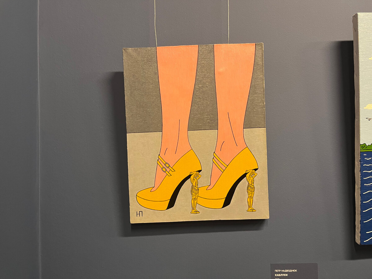 Теперь я точно знаю, куда нужно идти туристу после Эрмитажа. Хотя... даже можно выбрать этот музей, о котором пойдёт речь, вместо попсового, но исторически важного Эрмитажа. Итак," Эрарта" — очень популярный музей Петербурга, особенно у молодёжи, здесь постоянно очереди. Но их можно обойти, поскольку, если покупаете онлайн, то не нужно стоять в очередях, а можно протий просто просканировав с телефона штрихкод. Музей современного искусства основан в 2010 году, но не будем идти в историю, поскольку она не столь интересна. На этот раз меня впечатлила одна удивительная и яркая выставка. Выставка Петра Надводнюка заставляет ломать голову над картинами, но не без особого напряга. Его картины строятся на игре подобий. Думаю ниже вам будет интересно👇 Мужчины... это для вас. Атланты вместо шпилек😜 В картине с морем я так и не понял в чем фишка, но морская пена что-то значит. Кружевные пены прибоя. Остальные картины — о еде. Здесь прикольно. Женская часть композиций. Слева девушка уже собралас