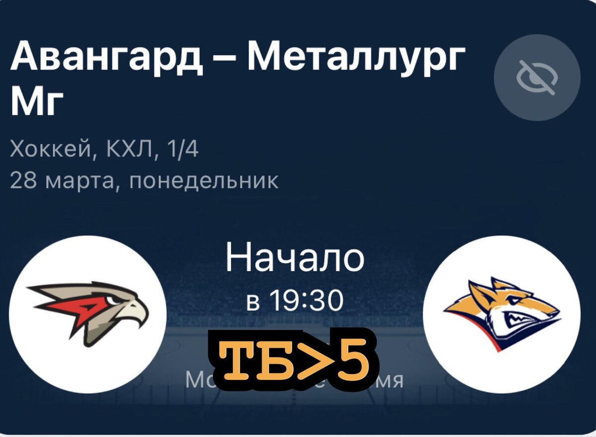 Хоккей. КХЛ Авангард - Металлург Магнитогорск 28.03.2022 | 19:30 ТБ5 Коэфф. 1.696