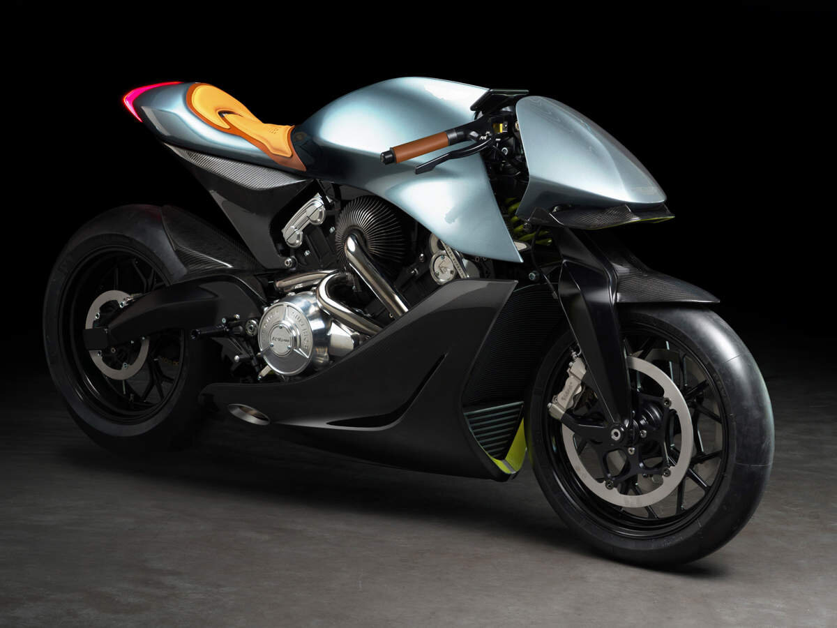 Слухи вокруг создания нового спортивного мотоцикла под брендом Aston Martin ходили давно. Однако проект представили только в 2019 году. Породистый жеребец получил имя AMB-001, а на конвейер отправился только сейчас, в 2022 году. Дизайн получился настолько футуристическим, что трудно поверить в то, что это действительно серийная модель, а не очередной концепт. Байк заточен под "кольцо", что подтверждает его масса равная 180 килограммам, которую удалось достичь благодаря инновационным технологиям и композитным материалам. Все экземпляры получат большое количество карбоновых элементов. и сидение, если его можно так назвать, обшитое эксклюзивной кожей. Мотоцикл получит "литровый" V-образный двигатель всего с двумя цилиндрами. Однако силовая установка оснащается турбонаддувом, что позволяет выдавать мощность в 183 лошадиные силы. Коробка передач 6-ти ступенчатая механическая. Скоростные характеристики компания не раскрывает. Спортбайк это совместная разработка Aston Martin с Brough Superi