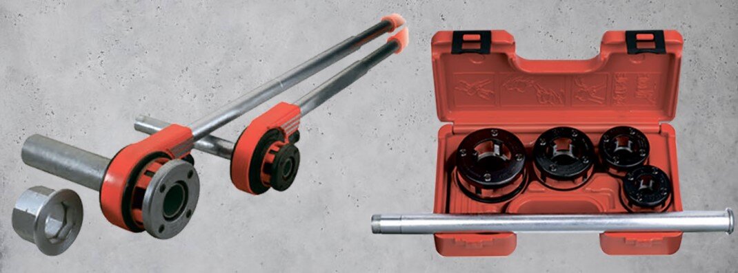 Для создания резьбового соединения необходим клупп и трубные тиски, а для его сборки трубные (газовые) ключи из материала высокого качества, способного выдержать большие нагрузки. Специалисты рекомендуют приобретать клупп с трещоткой, потому что такой инструмент удобен для нарезания резьбы на трубах, которые расположены в труднодоступных местах. Оцинкованные трубы соединяются либо с помощью пресс–соединения, либо с помощью резьбового. Сначала необходимо подготовить отрезок трубы нужной длины, разрезав трубу с помощью трубореза для металлических труб. Для создания резьбового соединения необходим клупп и трубные тиски, а для его сборки трубные (газовые) ключи из материала высокого качества, способного выдержать большие нагрузки. Специалисты рекомендуют приобретать клупп с трещоткой, потому что такой инструмент удобен для нарезания резьбы на трубах, которые расположены в труднодоступных местах. Отрезок трубы зажимается плотно в тисках. Затем в клупп вставляется подобранная по диаметру пла