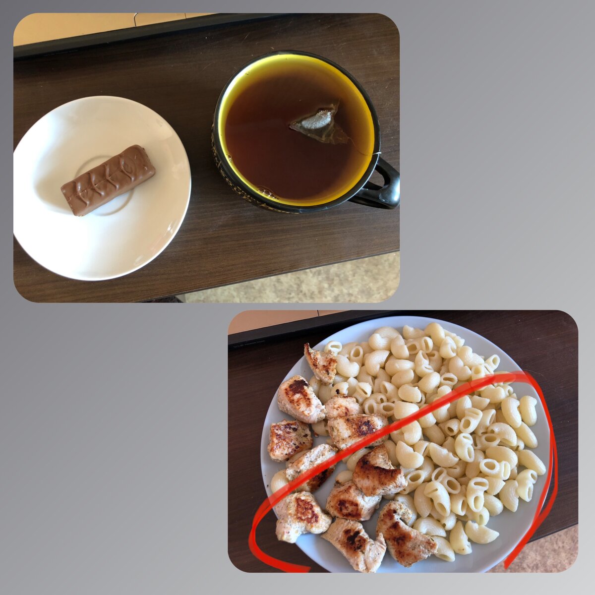 В ночь со среды на четверг я проснулась от озноба, померяла температуру и поняла, что заболела. Как же теперь быть, ведь у меня идет двухнедельный марафон тренировок, и я не хочу его забрасывать. Благо на четверг по графику марафона приходился выходной день. Я отлеживалась, пыталась спать как можно больше, но температура всё равно скакала туда-сюда, была дикая слабость и пр. Всё, что я смогла запихнуть в себя из еды – это 40гр сникерса и 2/3 порции курицы с макаронами. И это всё до 3х часов дня, больше ничего не ела, только пила чай с медом. Получился разгрузочный день – 886 калорий (а может даже и меньше). На следующий день в пятницу отвес 600 грамм. В этот день с питанием было уже лучше. В 9 утра позавтракала – омлет и хлеб бородинский – 626ккал. На обед в 12 дня смогла съесть только банан – 135 ккал. А поужинать захотела только через 8! часов – курин. крыло и голень, макароны, овощи – 633ккал. Еда вышла на 1395ккал, но я ещё часто пила чай с медом и малиной, что плюсом дало 567ккал