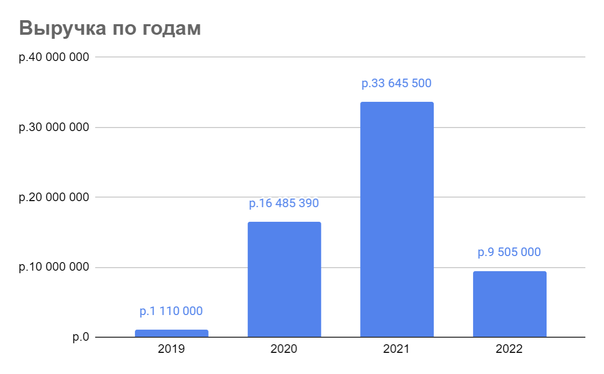 #бизнес секреты #доход #бизнесмолодость #голые цифры Всем привет, друзья! На связи МИГ Аналитика. Сегодня расскажем Вам об очередном нашем кейсе. К нам обратился собственник Клининговой компании, с просьбой проанализировать финансовые показатели фирмы. Задача, обозначенная клиентом: Сделать финансовый анализ выручки и прибыли. У Клиента были сомнения на счет динамики роста компании. По его словам, да, выручка растет, но при этом скорость роста прибыли не удовлетворительна. В результате анализа Клиент хотел увидеть тенденции роста выручки и прибыли, и понять, что не так в этих показателях. Организация начала свою деятельность в конце 2019 года, и для анализа у нас были данные за полные 2020 и 2021 года а так же за неполные 2019 и 2022 года. Первым делом мы посмотрели на выручку по годам. В этом графике видим стремительный рост выручки. Если сравнить полные годы (2020-2021), то получаем рост выручки на 104%. Очень даже неплохо! Давайте посмотрим на данные по каждому месяцу. Здесь тож