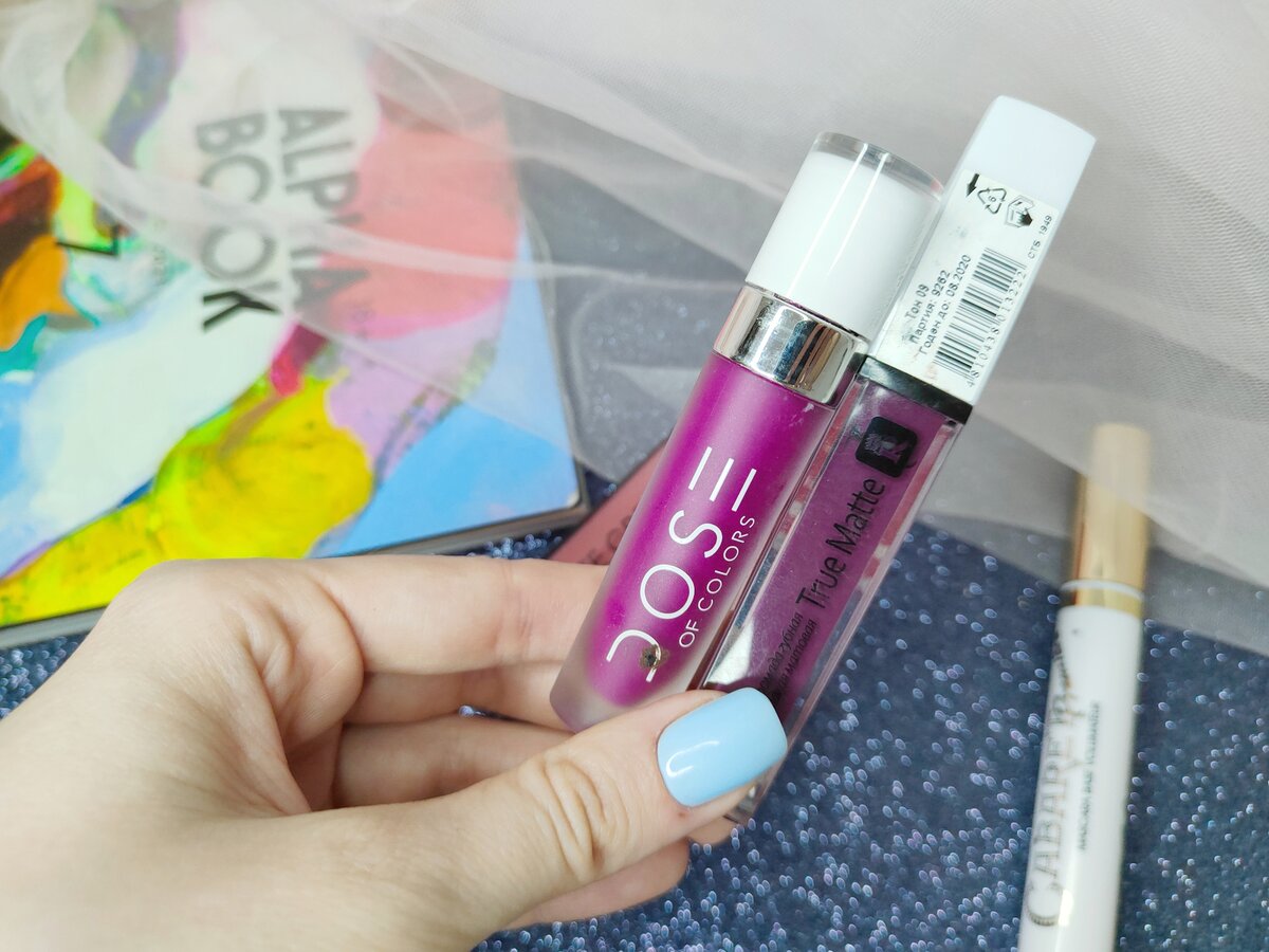 Всем привет, с вами автор канала Даша. Уже почти конец месяца, а, значит, можно уже подводить косметические итоги февраля. Сюда я включила и декор, и уход. Получилось довольно большая подборка, надеюсь,что вам будет интересно. Декоративная косметика Жидкая губная помада Dose of Colors Matte Lipstick Раньше я любила необычные оттенки помад, особенно фиолетовые. Но,к сожалению, найти такой оттенок с хорошим качеством сложно. Они полосят, ложатся очень неравномерно. С этой помадой вышло именно так. Оттенок очень красивый в тюбике, но ужасно выглядит на губах. Думаю, что другие оттенки по качеству намного лучше, так как помада комфортная в носке, не сушит губы и даёт красивый матовый финиш. Купить этот бренд можно в Л'Этуаль. Жидкая губная помада Relouis True Matte Complimenti Про линейку нюдовых помад Relouis я уже рассказывала, она мне не слишком понравилась, плохо ложится и подчеркивает текстуру. Яркая линейка тоже мне не понравилась, оттенок ярко-фиолетовый, ложится очень некрасиво. Е