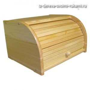 Приобрести готовую хлебницу можно в любом сельскохозяйственном магазине, но гораздо дешевле обойдётся ёмкость для хранения хлеба, сделанная своими руками. Существует множество вариантов, но сегодня рассмотрим как легко сделает модель из дерева. Всем приятного прочтения. Обычно хлеб хранят или в целлофановом пакете или в холодильнике. Но лучшее место для него конечно же деревянная хлебница. Там сохраняется более-менее постоянная влажность и такая хлебница дышит, благодаря чему хлеб долго не плесневеет и не зачерствевает. Деревянную хлебницу не так уж и сложно сделать своими руками. Вот ее чертеж: Из материалов нам понадобится доска толщиной 10-12 мм лучше из березы, дуба, ясеня или липы. Сосна не годится, т.к. она будет насыщать хлеб смолистым запахом. Еще понадобятся деревянные рейки для гибкой крышки, ручка и крепеж.