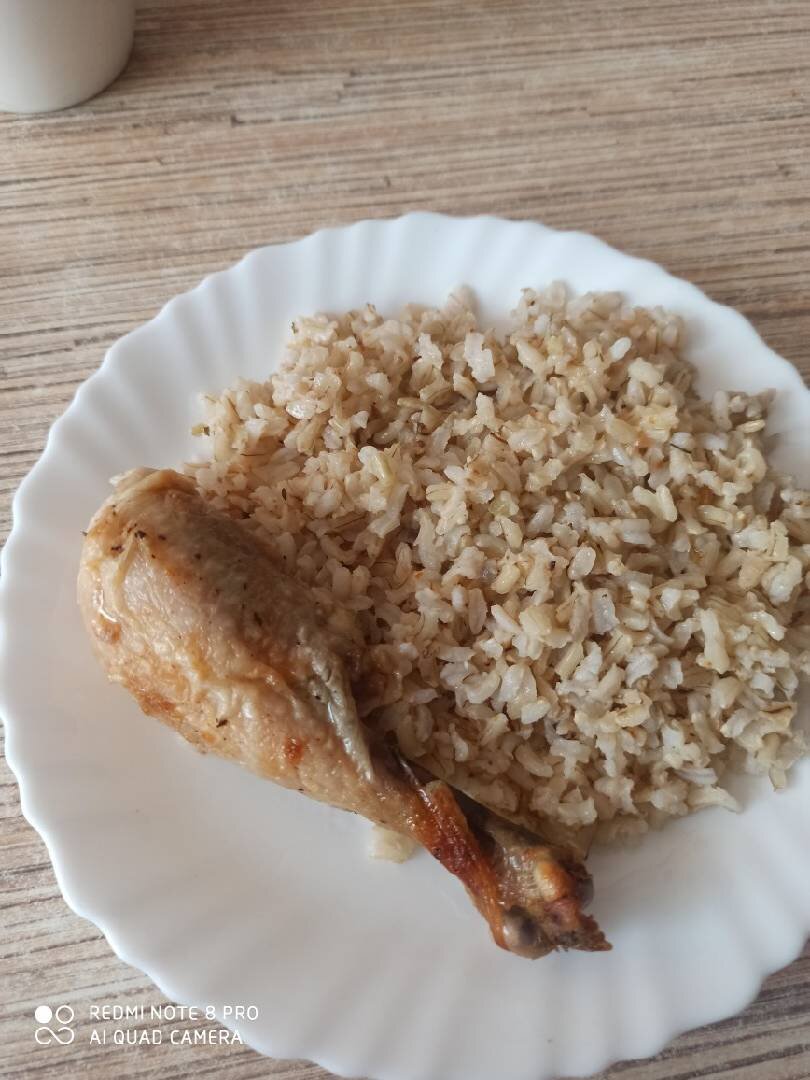 Очень вкусный, а главное простой в приготовлении рецепт. Даже не успела сделать основное фото готового блюда.) Добавлю его позже)). Ну а пока только оставшаяся куриная ножка)). Ингредиенты: цыпленка бройлера весом примерно 1,7-2 кг, чеснока, Для маринада:, соли, перца молотого черного, чеснока гранулированного, красной сладкой паприки, растопленного сливочного масла Способ приготовления: Тушку промыть, на грудке аккуратно ложкой отделить кожу. Сделать так сказать кармашек. Далее готовим маринад. Для этого соединяем все сухие ингредиенты : соль, перец, паприку и чеснок. Затем к этой смеси добавляем растопленное сливочное масло. Тщательно перемешиваем. Маринад готов Полученным маринадом хорошо промазываем вначале наш полученный кармашек. Затем тщательно смазываем всю курицу. Оставляем ее на некоторое время промариноваться. Примерно 1-2 часа. Можно этого не делать, а запекать сразу. Противень застилаем фольгой, укладываем в него курицу, внутрь кладём дольки чеснока, накрываем сверху также