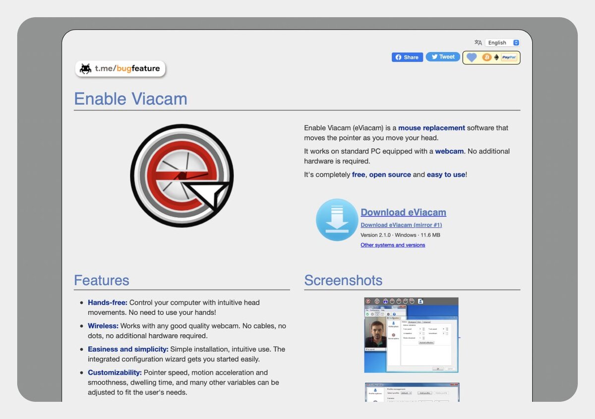 Еще каких нибудь пару десятков лет назад казалось, что управлять компьютером без рук невозможно. Теперь эта технология доступна всем. Она может значительно помочь тем, кто в силу любых ограничений не может управлять компьютером руками. Enable Viacam используется для замены мыши. Эта программа отслеживает вашу голову и лицо, а алгоритмы помогают управлять курсором. Работает для Windows и Linux. Viacam дает людям с физическими ограничениями возможность вести полноценную жизнь. Программа работает с любой веб-камерой хорошего качества, никакого дополнительного оборудования не требуется. Простая установка и интуитивно понятное использование. Можно настроить скорость указателя, плавность движения и многие другие моменты в соответствии с потребностями пользователя. Enable Viacam специально разработана автономной, чтобы устранить необходимость в помощи после установки. Это свободное программное обеспечение, выпущенное на условиях GNU/GPL 3. #полезно #windows #linux