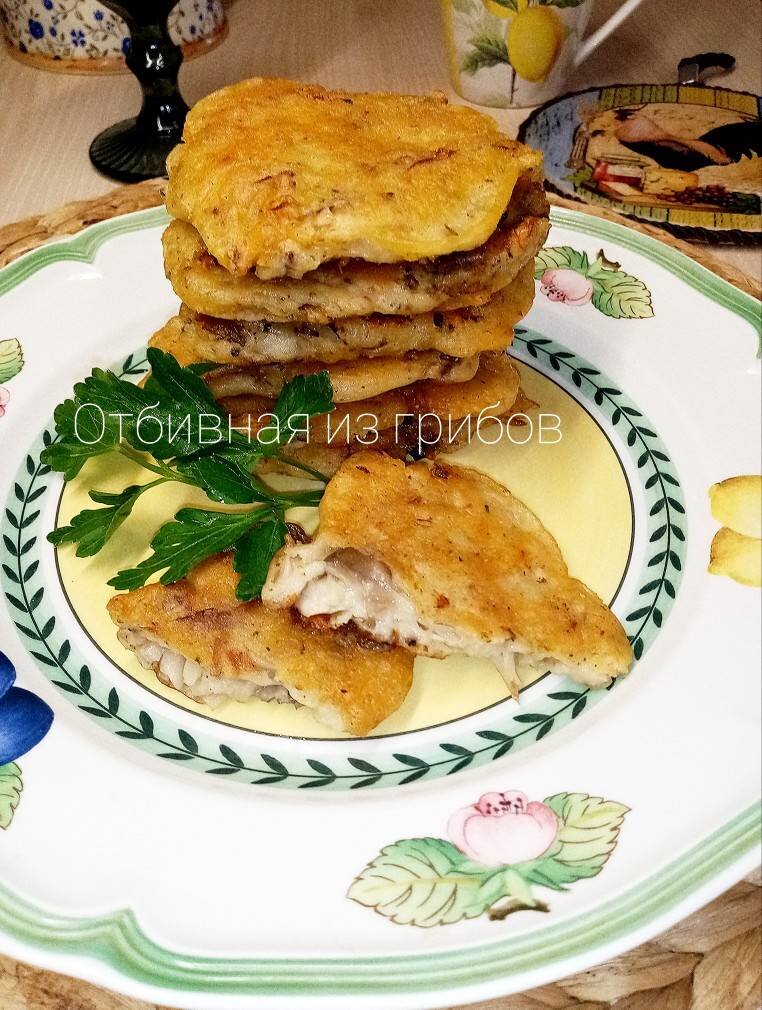 #пост #грибывкляре Здравствуйте, Прекрасные Хозяюшки! Мира всем. Спасибо что зашли в гости!🌷 Сегодня хочу с Вами поделиться простым, постным и быстрым рецептом из грибов. Отбивные вешенки в кляре, без яиц, находка для Поста. Это вкусно, сытно, полезно, так как в грибочках остаётся много микроэлементов для нашего здоровья. Подавать можно с гарниром из риса, картофеля, гречки или с любым соусом как закуска. Давайте готовить?!) Ингредиенты: вешенок (грибов), растительного масла для жарки грибов, Кляр, воды, ст л муки, чеснока, разрыхлителя, по вкусу соль, перец, праванские травы Способ приготовления: Вешенки моем, обдаем кипятком. Разрезаем на соцветия (кучками) Берём полиэтиленовый пакет, кухонный молоток. На пакет выкладываем вешенки, накрываем другой половиной пакета и слегка отбиваем гриб, чтобы стал приплюснутым. Слегка солим, перчим. В миску вливаем воду, муку, разрыхлитель, соль, перец, специи, измельчённый чеснок. Ещё я добавляю щепотку сахара. Кляр должен получится как жидкая см