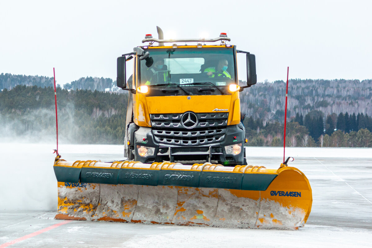Все мы не раз видели как чистят зимой дороги в наших городах, а многие ли из вас видели как чистят "дороги для самолетов"? Взлетно посадочные полосы, рулежные дорожки, ну и о перроне не забываем. В 2021 году Международный Аэропорт Красноярск обновил парк техники для зимнего обслуживания аэродрома. Начнем краткий обзор с новинки на перроне, Øveraasen RSC 250, компактная подметально-уборочная машина на шасси Mercedes Arocs с поворотной, управляемой задней осью, за счет чего может применятся в ограниченном пространстве на стоянках ВС и узких рулежных дорожках, оборудована снеговым отвалом, подметальной щёткой и продувочным вентилятором. Самым большим преимуществом компактных подметально-уборочных машин RSC Øveraasen является то, что они разработаны и рассчитаны на использование на высоких скоростях до 65км/ч. А за счет задней поворотной оси машина не смотря на свои большие габариты великолепно маневрирует вокруг телетрапов, и другой перронной техники. Не смотря на то что RSC 250, быстра